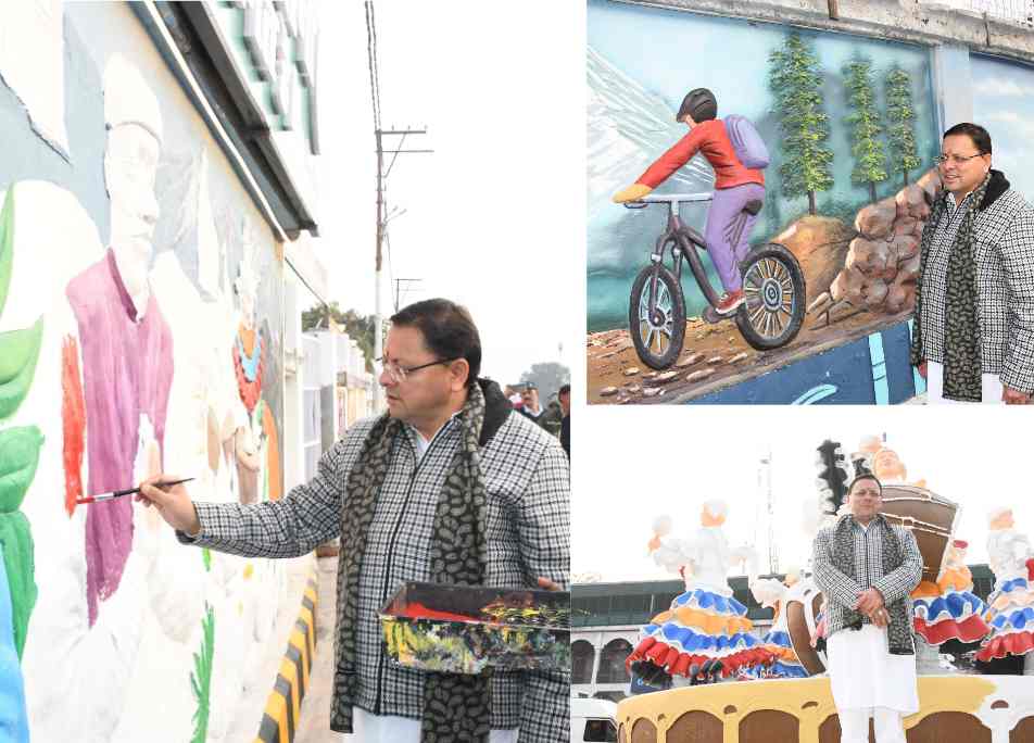 मुख्यमंत्री पुष्कर सिंह धामी ने बुधवार को गौलापार स्थित अंतरराष्ट्रीय स्टेडियम पहुंचने से पहले हल्द्वानी स्मार्ट सिटी के तहत सड़कों के चौड़ीकरण का जायजा लिया। उन्होंने सड़कों के सौंदर्यीकरण के तहत कुमाऊंनी संस्कृति पर बनाए गए भित्ति चित्रों की सराहना की। इन्हें देखकर धामी में कुछ पल के लिए चित्रकार जाग उठा, उन्होंने एक दीवार पर पेंटिंग की।