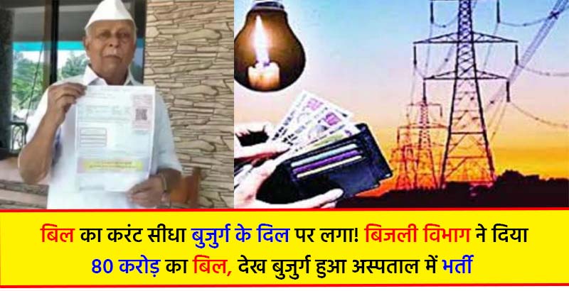 दरअसल ये मामला महाराष्ट्र के नालासोपारा इलाके का है. यहां एक बुजुर्ग को 80 करोड़ का बिल थमा दिया गया, फिर क्या था बिल का करंट सीधा उनके दिल पर लगा और उनकी तबीयत अचानक से खराब हो गई. जिसके बाद उन्हें अस्पताल में भर्ती कराना पड़ा. मीडिया में आई खबरों के मुताबिक इस बुजुर्ग शख्स का नाम गणपत नाइक है.