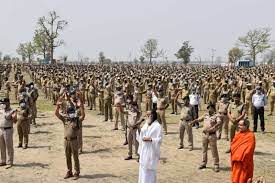 कोरोनाकाल में हो रहे महाकुंभ के दौरान पुलिसकर्मियों और अर्द्धसैनिक बलों ने खुद व दूसरों को भी इस संक्रमण से बचाने के लिए जागरूक करते हुए मानव सृजित मास्क की आकृति बनाई। साधु-संत भी इसके गवाह बने। आकृति को इंडिया बुक ऑफ रिकॉर्ड में भी दर्ज किया गया।