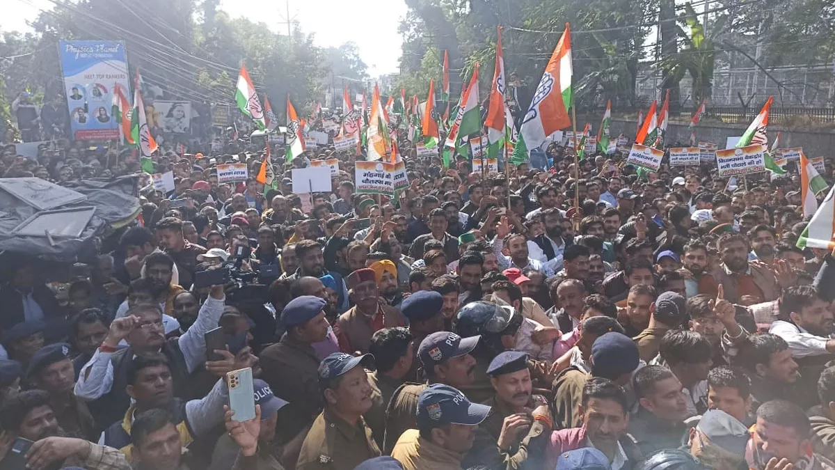 बेरोजगार युवाओं के प्रदर्शन के दौरान हुए पथराव के मामले में जेल गए अपने नेताओं की रिहाई की मांग को लेकर युवाओं का प्रदर्शन जारी है। अभिषेक टावर के पास प्रदर्शन कर रहे युवाओं के साथ कांग्रेस के नेता भी धरने पर बैठ गए।